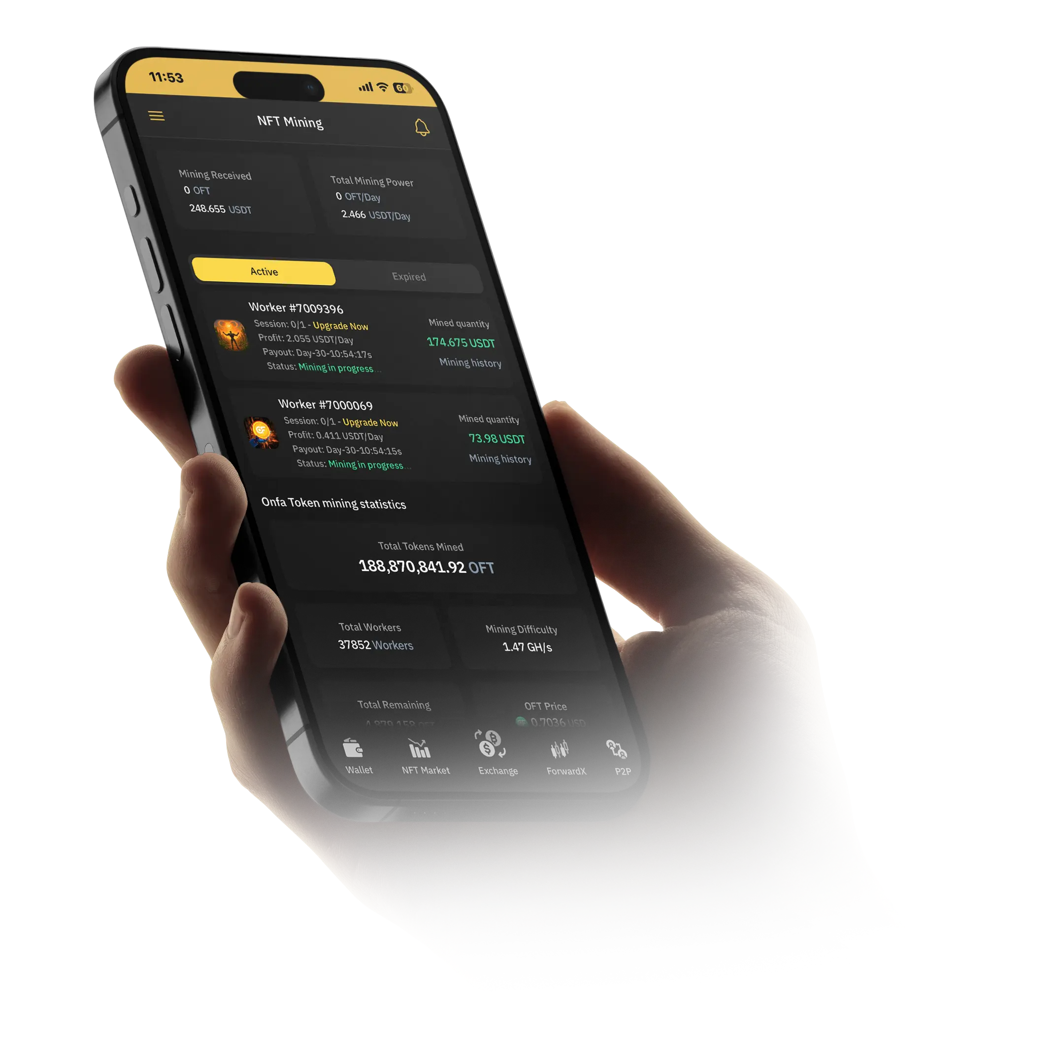 With ONFA Mining, each NFT becomes a Worker — a fully functional token mining unit.